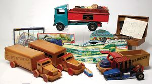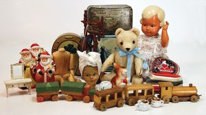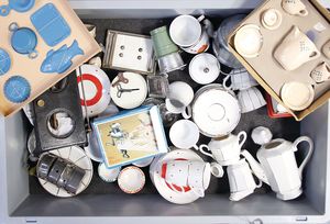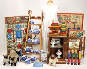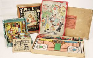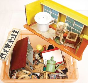 Fundkiste, mehrere Service, im Orig.-Kart., einige Spiele, Kleinteile, 30er-70er Jahre