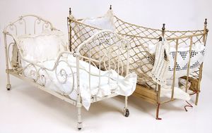 2 Teile Puppenbetten, Breite 60 cm u. 55 cm, um 1900
