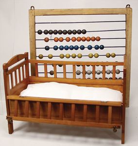 Puppen-Hochstuhl, 50 cm, 1 Puppenbett, 46,5 cm, ca. 1910