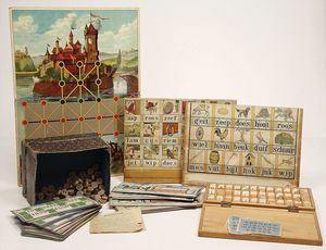 Fundkiste, frühes Tennisspiel, Schlitten in Puppengr., Holzlegespiel, Bilderbuch ,Orig. kein Nachdruck, "Im Blumenhimmel", Stalling Verlag Oldenburg, guter Zustand, Theodor Dorn, "Storm vom kleinen Hebelmann", guter Zust. 20/30er Jahre, "Bilderbuch vom Dickköpfigem Peterle", 50er Jahre