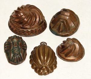 Konv. Puppenküchenteile, Porzellan, Weißblech, 1 Kupferkessel, Deckel fehlt