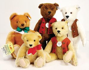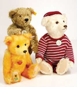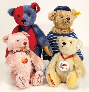 Konv. 4 Teile, 3 x Hermann, 1 x Steiff, neuere Produktion, davon 2 Bären mit Zertifikat, sehr guter Zust.