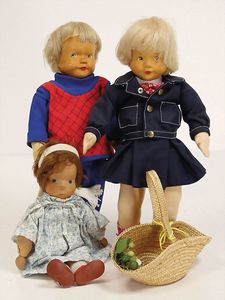 Konv. Puppen, Schildkröt Erika, 56 cm, braune Schlafaugen, Kurbelkopf, Schildkröt Inge, 42 cm, gemalte Augen, teilw. farbl. überarbeitet Schildkröt Strampelchen, Tortulon, 50 cm, Schildkröt Brustblattkopf-Puppe, 37 cm, gemalte Augen, Schildkröt Mädchen, Tortulon, 49 cm