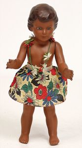 Vinylpuppe, Puppe Tortulon, Mädchen farbige Puppe M&M, Puppe Kopf Vinyl, Minerva Mädchen, Celluloid, 47 cm, Hans u. Ursel Replika