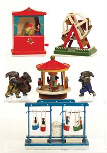 Karussell, 47 cm Durchm., wohl 30er Jahre, mit Celluloid-Püppchen