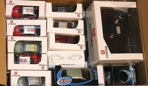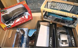 2 Kisten, ca. 27 Modellautos, darunter auch einige leere Kartons ohne Inhalt, diverse Maßstäbe wie 1:24, 1:18, 1:58, alle im Orig.-Kart., Hersteller wie Welly, Norev, Modelle wie Citroen, Peugeot, alle in gutem Zust.