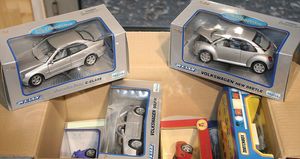 gr. Konv. Automodelle, von Maestro, Road signature?, Road legend, mit einigen Special editions u. Modellen wie Mercedes CLK GTR, Porsche Nr. 1, VW New Beatle, alle im Orig.-Kart., guter Zust.