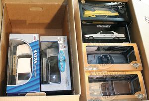 2 Kisten, mit ca. 27 Modellautos, darunter auch leere Kartons ohne Inhalt, diverse Maßstäbe wie 1:18, 1:24, Hersteller wie Maisto, Emec, Modelle wie Lexus, Mazda, im Orig.-Kart., guter Zust.