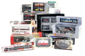 2 Kisten, mit 24 Automodellen, diverse Maßstäbe wie 1:24, 1:17, 1:16, 1:18, Marken wie Burago, Solido, Modell wie Alfa Romeo 156, Rover Freelander, Fiat 500, alle im Orig.-Kart., guter Zust.