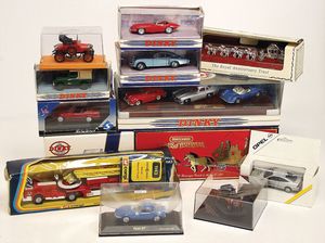 Konv. 15 Teile Modellautos, Opel GT, Ferrari Dino, Mercedes 300 SL, Jaguar, Bentley, etc., untersch. Hersteller, neuwertig, Orig.-Kart., meist 1:43