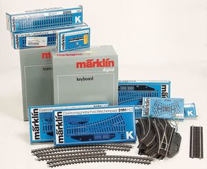 Digital, Transformer 6002, digital Keyboard 6040 11AA, im Orig.-Kart., techn. nicht geprüft, dazu 1 größere Anzahl Kunststoffgleise, gerade, gebogen, Weichen, guter Zust.