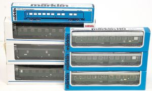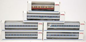 Konv. besetehend aus 6 Personenwagons, 4-Achsig, H0, neuwertiger Zust., im Orig.-Kart.