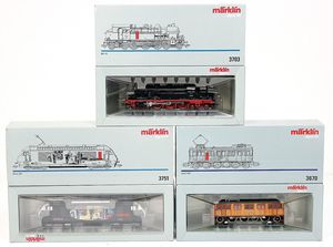 H0, Konv. 4 Teile, 3102 Baureihe 53, neu im Kart., 3085 Baureihe 003, Deckel am Kart. weggerissen, sonst neu im Kart., 3324 1139, neu im Kart., 3151 10460, Kart. seitl. eingerissen, sonst neu im Kart.