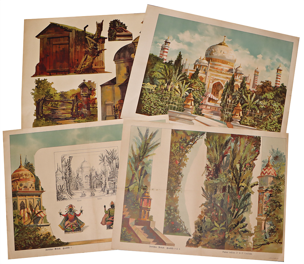 Papiertheater, Hintergründe und Kulissen, J.F.S.LE Bögen Nr. 55, Nr.47, 87, 80, 88, 67, 108, 107, 106, 48, 104, meist sehr guter Zustand