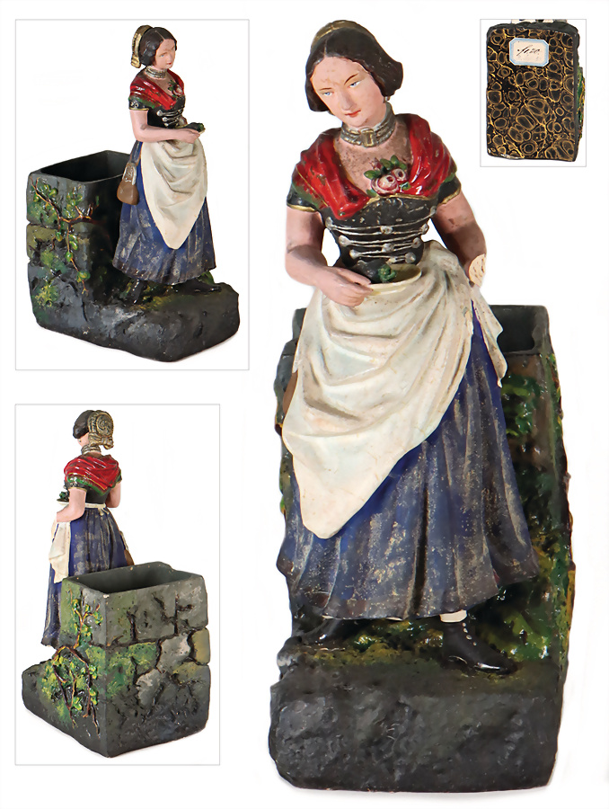 Biedermeier-Dame mit Brunnen, Masse, H: 16 cm, fein gearbeitet, 1 Hand fehlt
