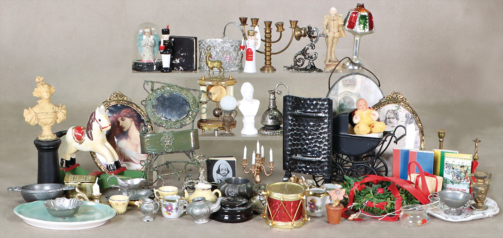 Gr. Konv. Puppenstuben-Ausschmückungsteile, Puppenzubehör, untersch. Zeit, untersch. Zustand, reichh.