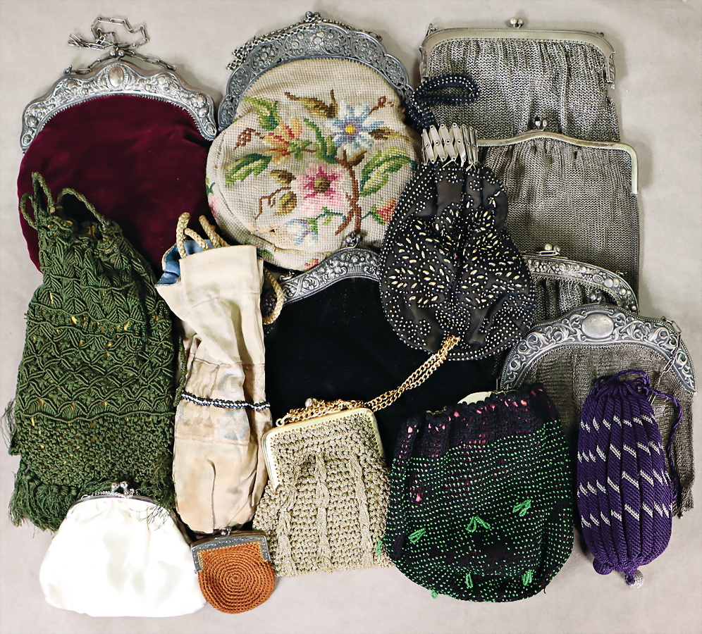 Konv. frühe Taschen, 15 Teile, teils versilbert, Biedermeier-1900, meist guter Zust.