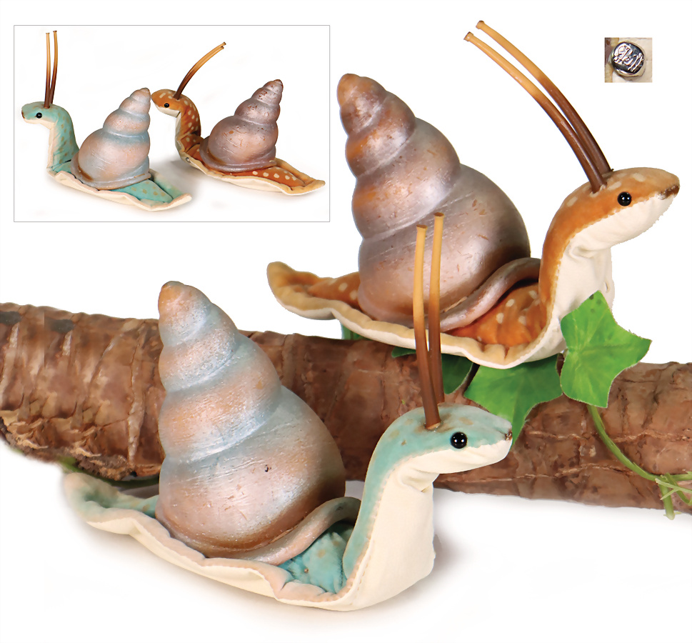 2 Teile, Schnecken, Nelly, 1 x mit Knopf, 16 cm Länge, allg. Zustand gut