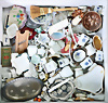 Fundkiste, Puppenstuben-Ausschmückungsteile, Blech, Zinn, Messing, Porzellan, untersch. Zeit, untersch. Zust.