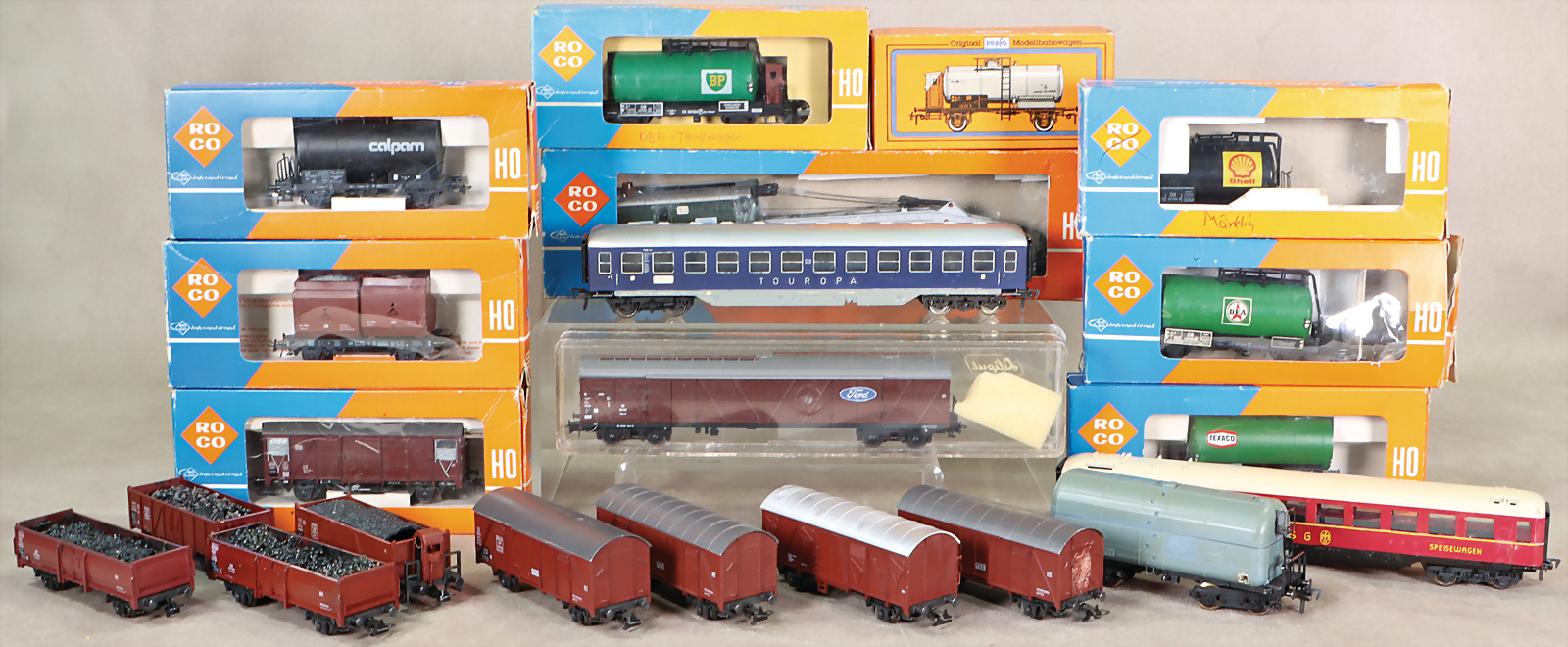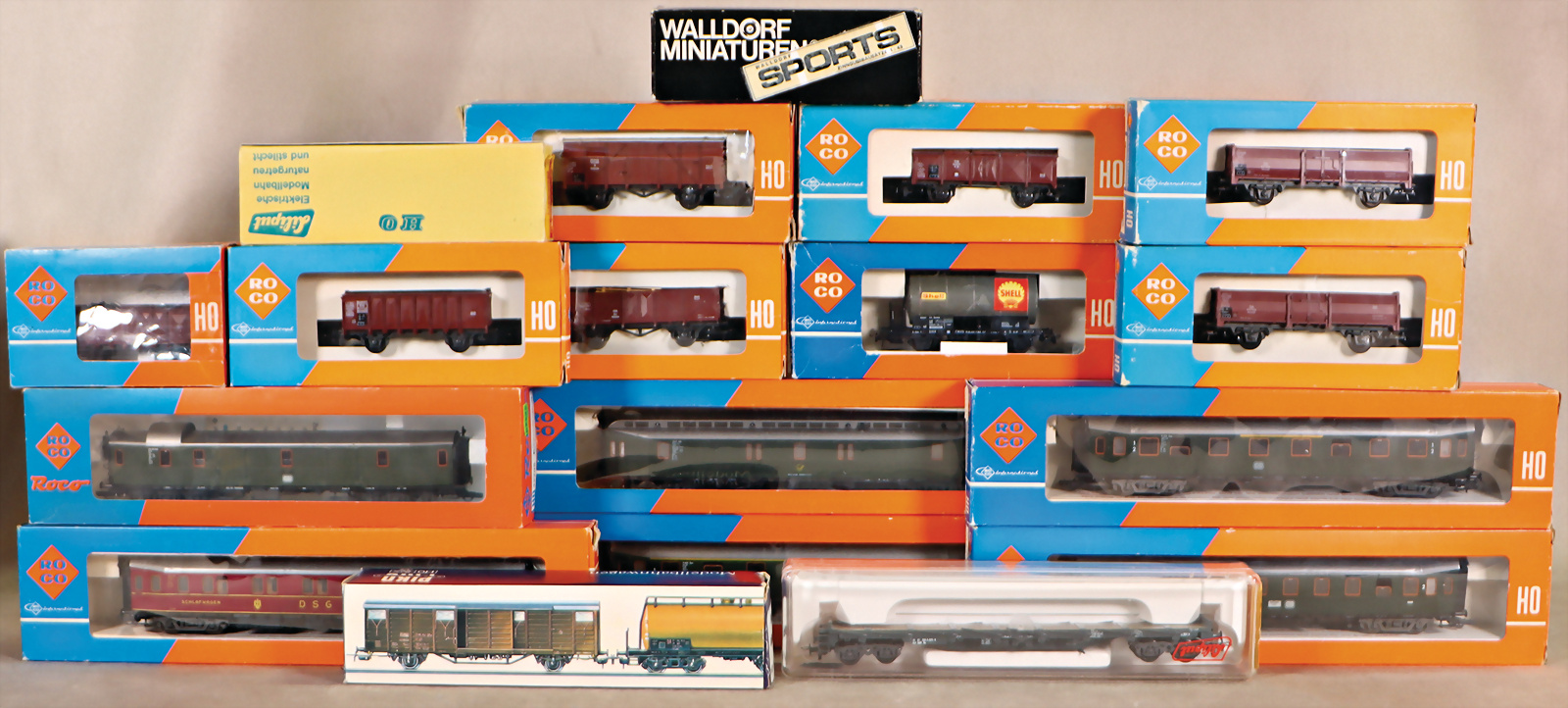 Konv. ROCO u.a., Güter- u. Personenwagen, im Kart., meist guter Zust.