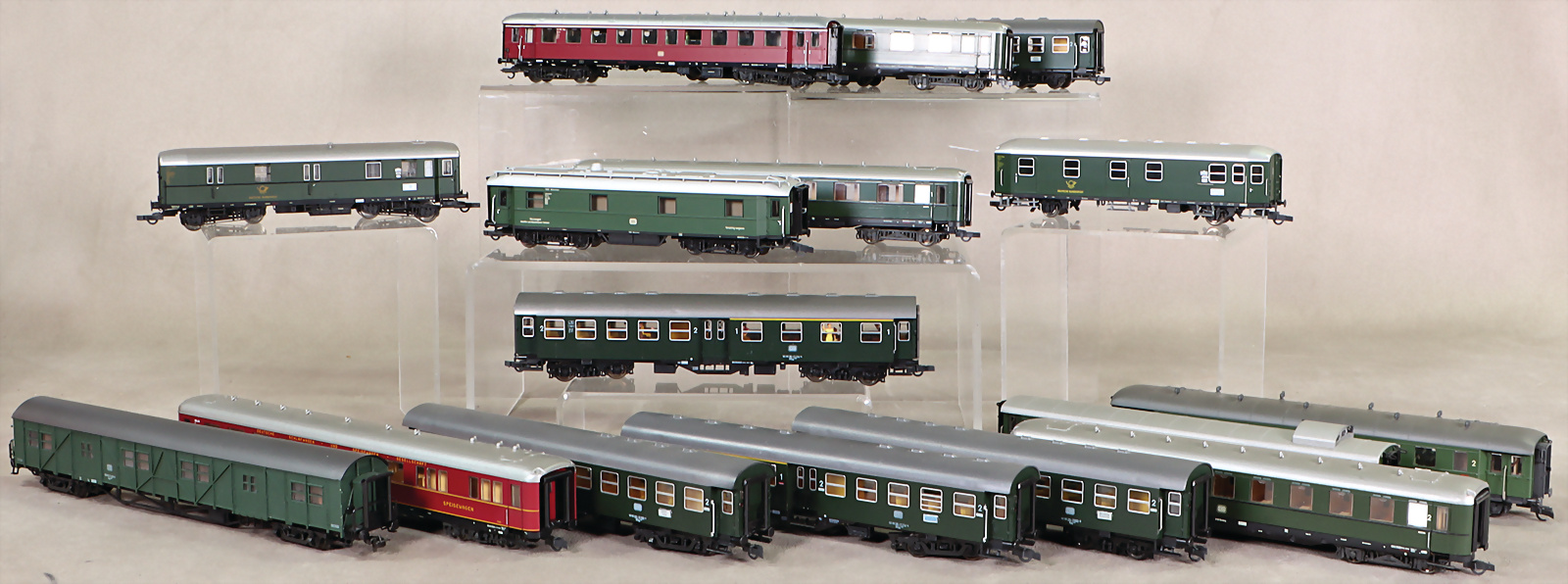 H0, Konv. Eisenbahn, 4-achsige Personenwagen, untersch. Hersteller, ohne Kart., sehr guter Zust.