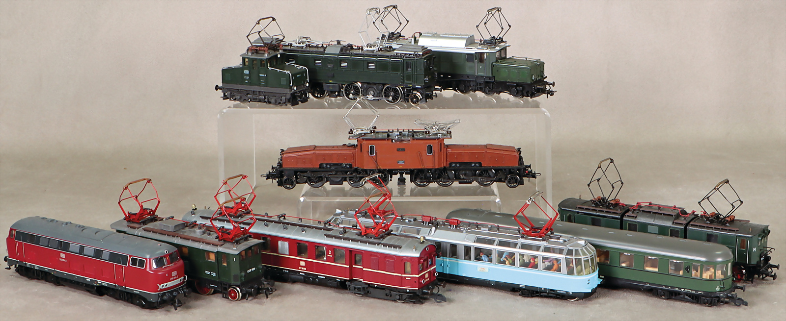 Konv. Elektro-, sowie 1 Diesel-Lok, darunter das Krokodil, Triebwagen, kl. Rangierlok, meist guter Zust., techn. nicht gepr.