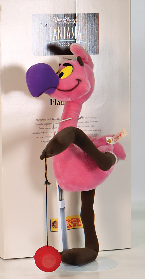 Neuere Produktion, Walt Disney Pictueres „Fantasia 2000“, Flamingo, mit Knopf u. weißer Fahne, neuw. im Orig.-Kart.