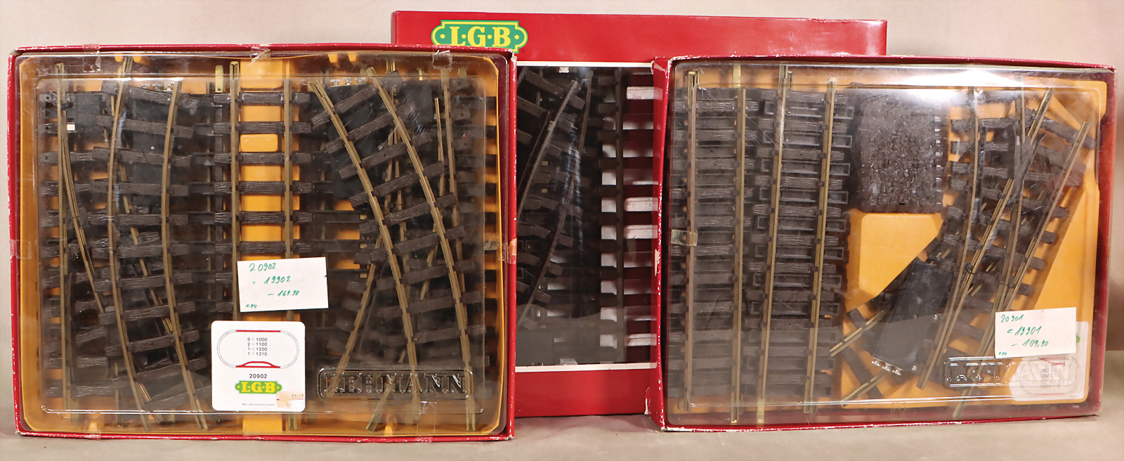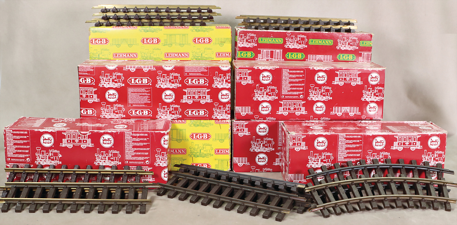 Konv. LGB, LEHMANN, Gleismaterial, 1100, 5 Packungen, 2 Packungen, 100W, teils neuwertig, teils etw. bespielt