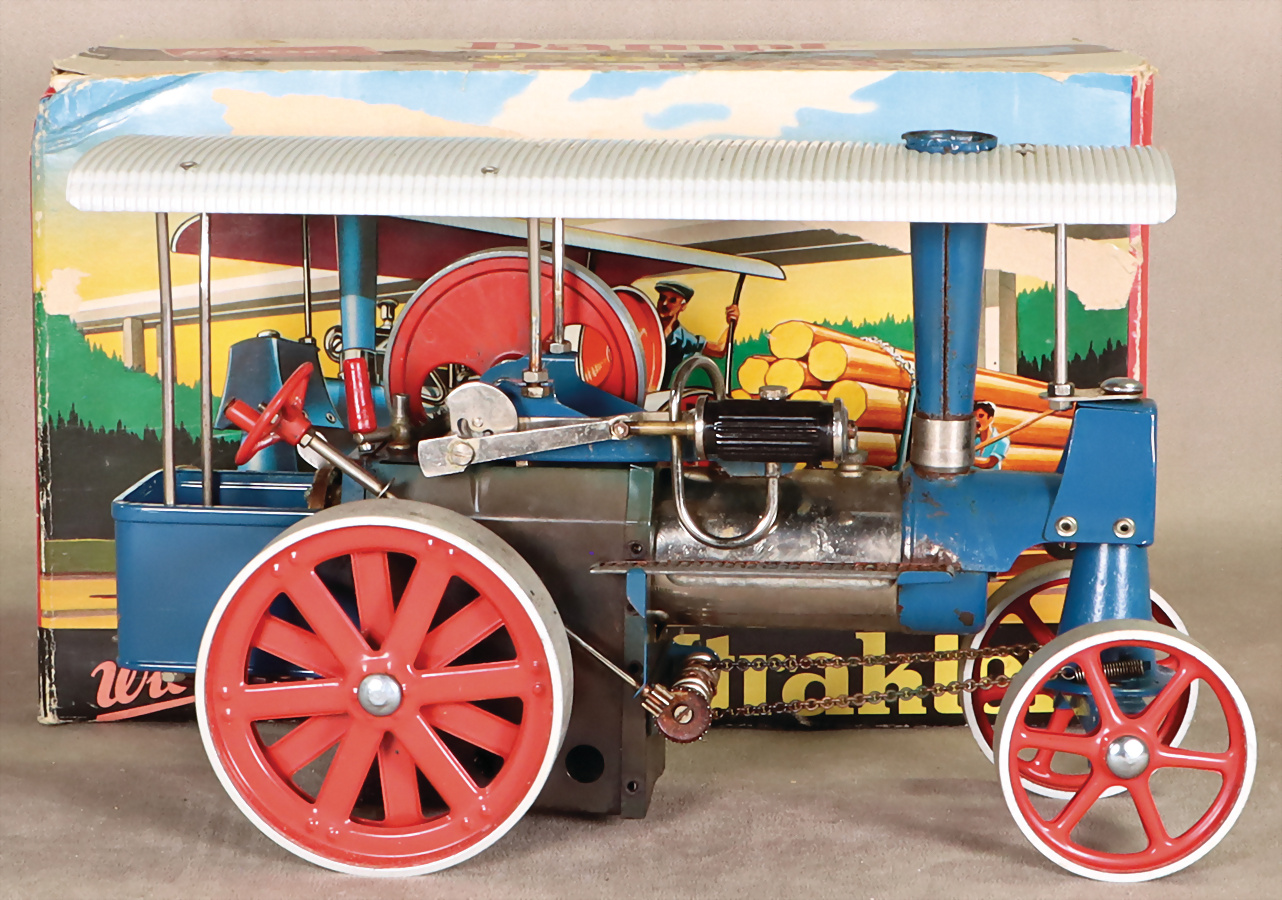 Dampftraktor, schwere Metallausführung, bespielt, techn. nicht geprüft, im Orig.-Kart., mit Brenner