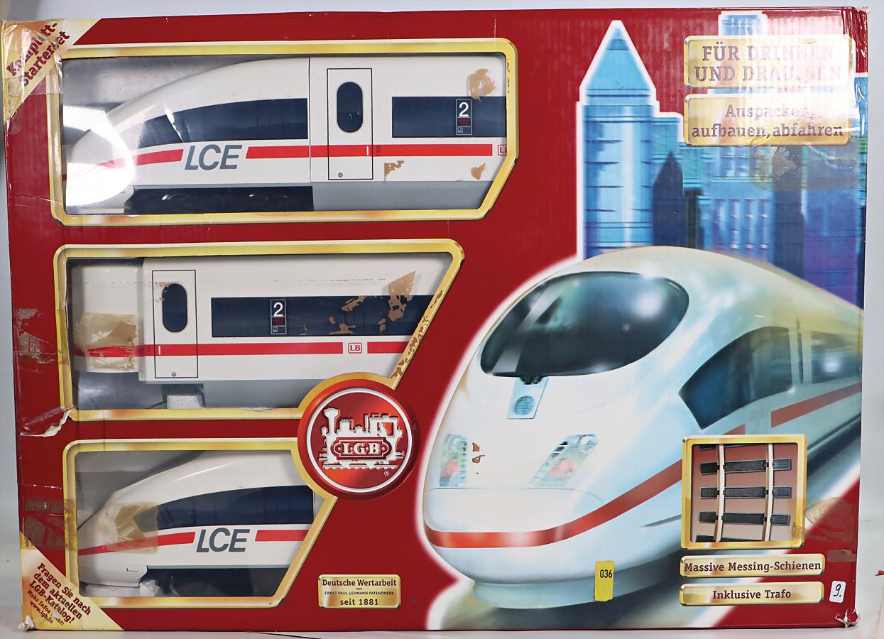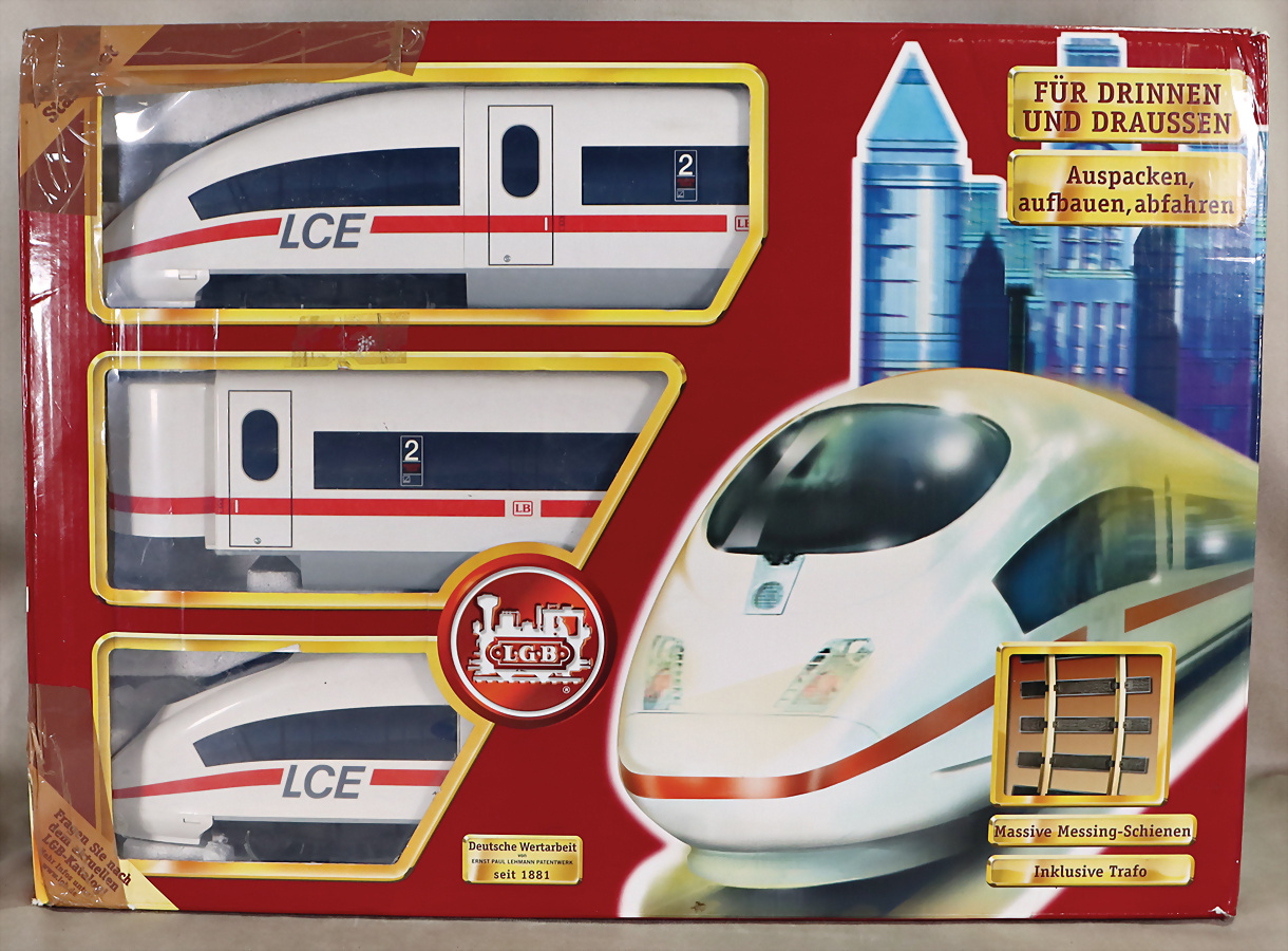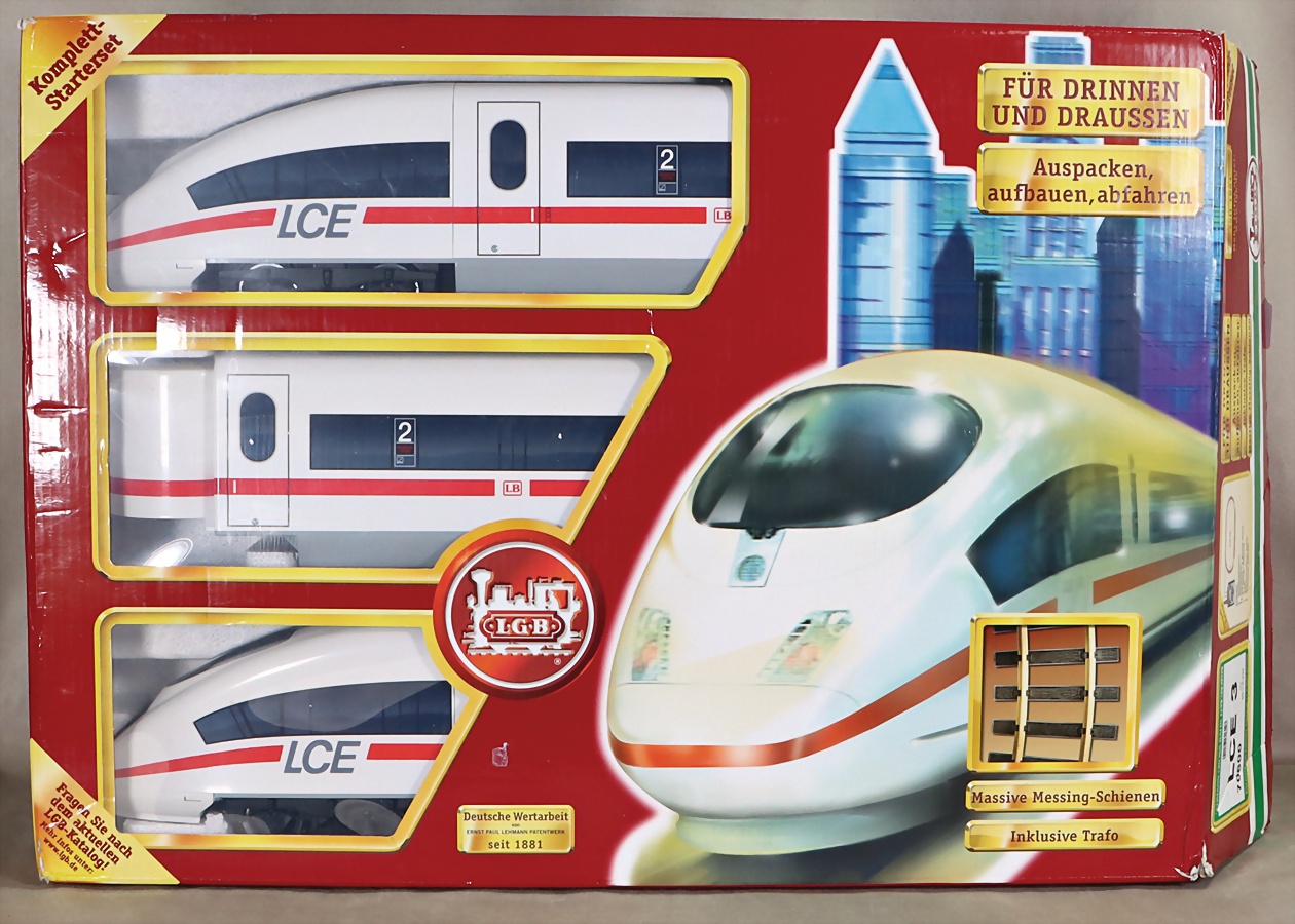 LCE3, 70600, Triebwagen, 3-tlg., mit Gleismaterial u. Transformator, im Orig.-Kart., Kart. verschlissen, guter Zust., techn. nicht geprüft