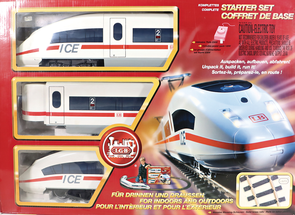 ICE, 70600, 3-tlg. Triebwagen, mit Gleismaterial, Transformator u. Orig.-Kart., guter Zust.