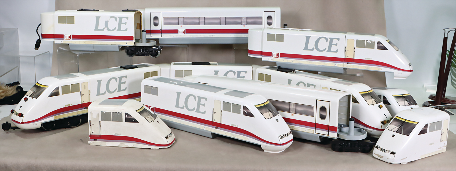Triebwagenzüge, Mittelteile, Frontteile, untersch. Zust., teilw. zum Basteln, 1 Umzugskarton, gefüllt Versandaufwand beachten