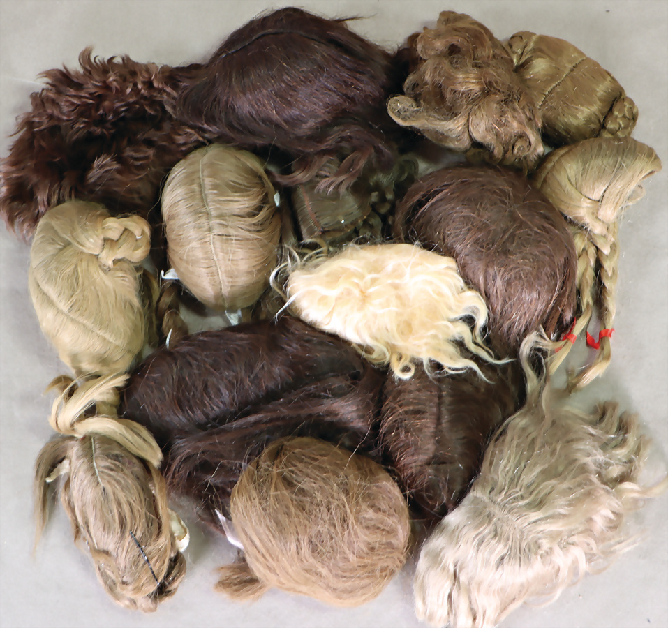 Konv. Puppen-Perücken, Echt- u. Mohair, 17 Teile, meist alt