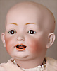 Porzellan-Charakter-Baby, gem. 211, 48 cm, off. Mund, 2 Zähne oben, Zunge, braune Schlafaugen, von außen keine Risse erkennbar, Orig.-Mohair-Perücke, Sitzbaby-Körper