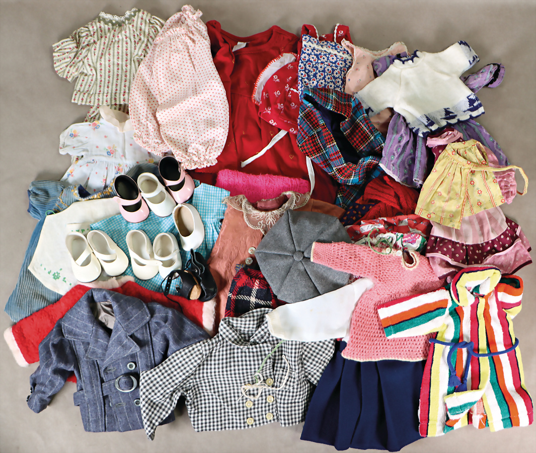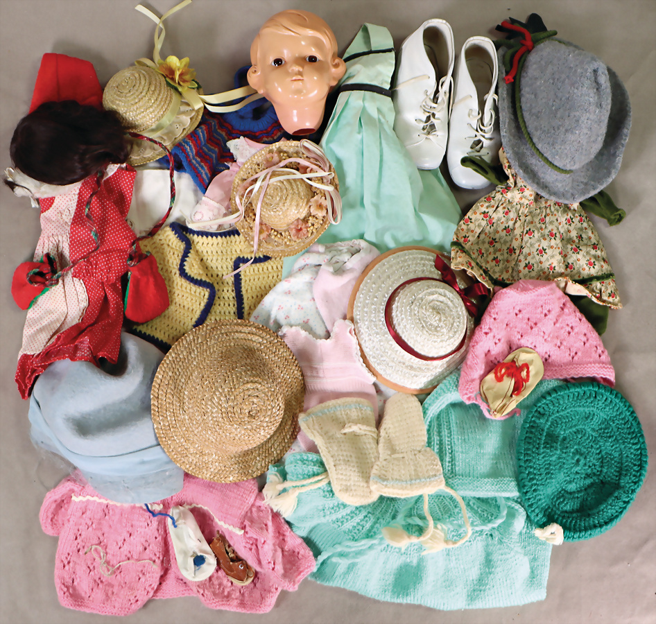 Konv. Puppenkleidung, meist 30er-60er Jahre, reichhaltig, nicht alle Teile fotografiert