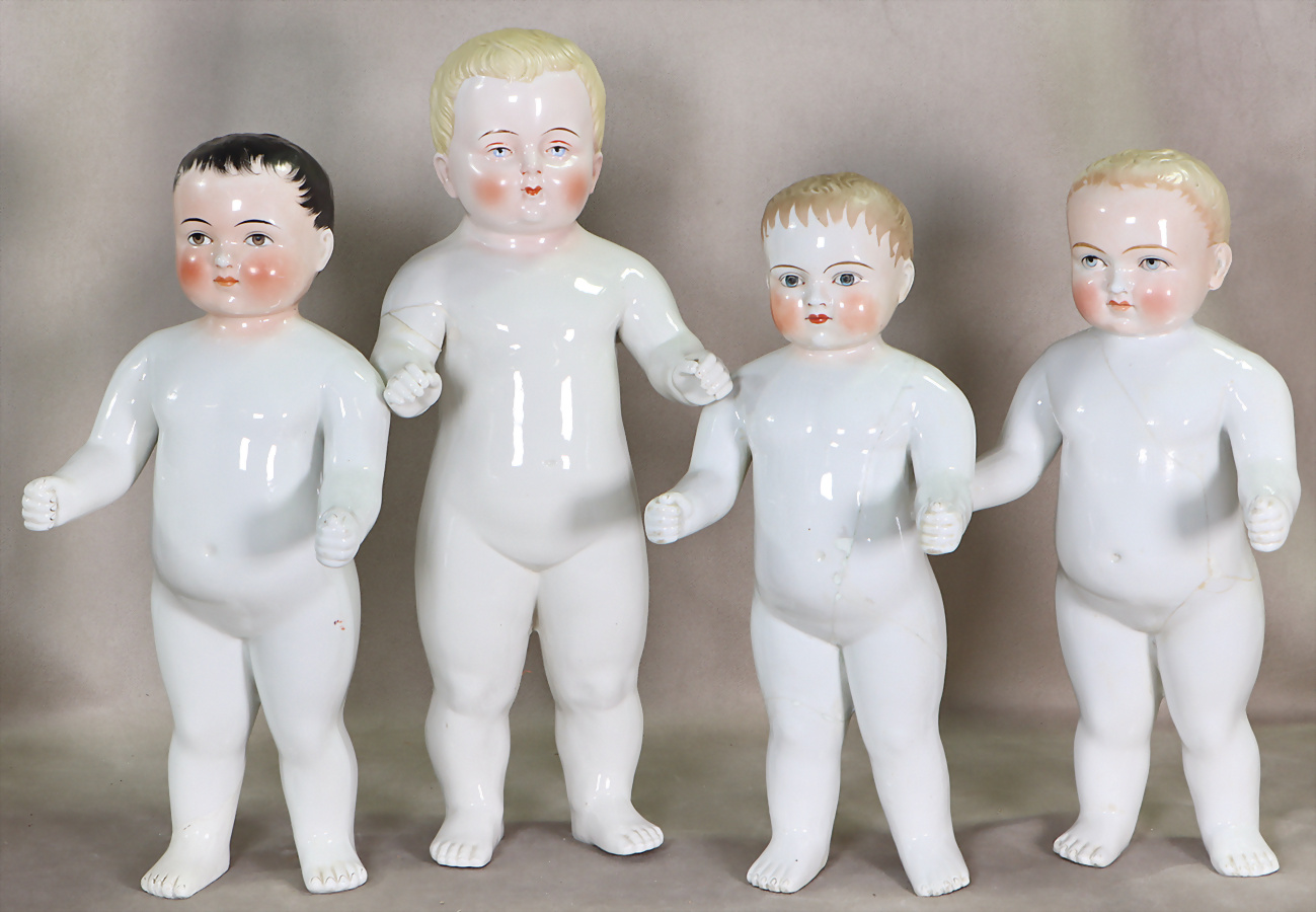 4 Teile, Badepuppen, Frozen Charly, glasiertes Porzellan, 38-46 cm, alle Teile zerbrochen u. geklebt