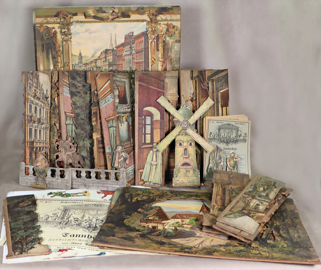 Papiertheater, Kulissenteile, Figuren, Anleitungshefte, 1 Frontteil mit Vorhand