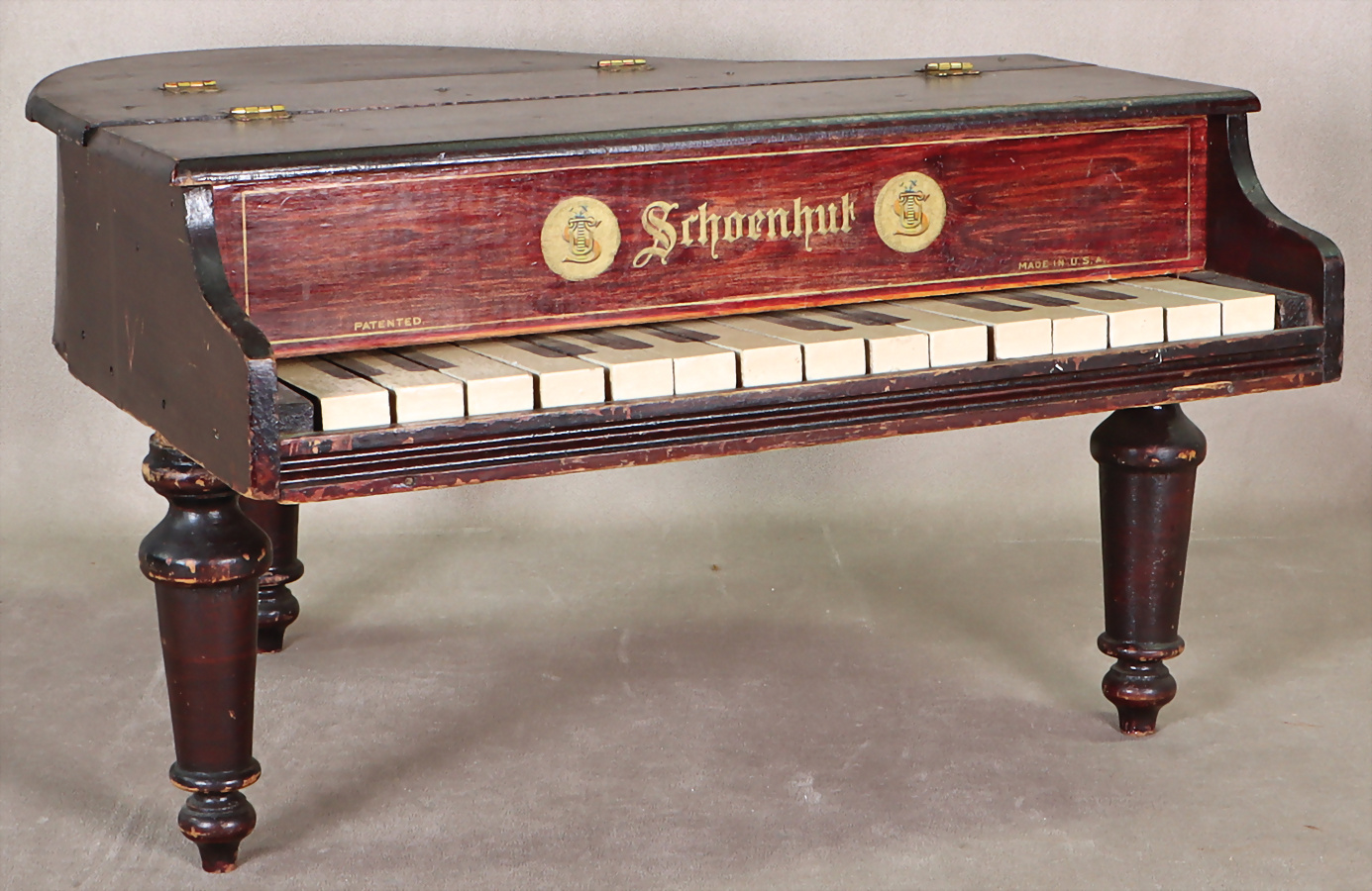 Kaufladen, um 1900, B: 79 cm, H: 36 cm, T: 35 cm, Schubladen mit Blechschildern, Orig.-Tapete, Orig.-Bemalung, mit Zubehör, 1 Verzierung an der Säule liegt lose bei