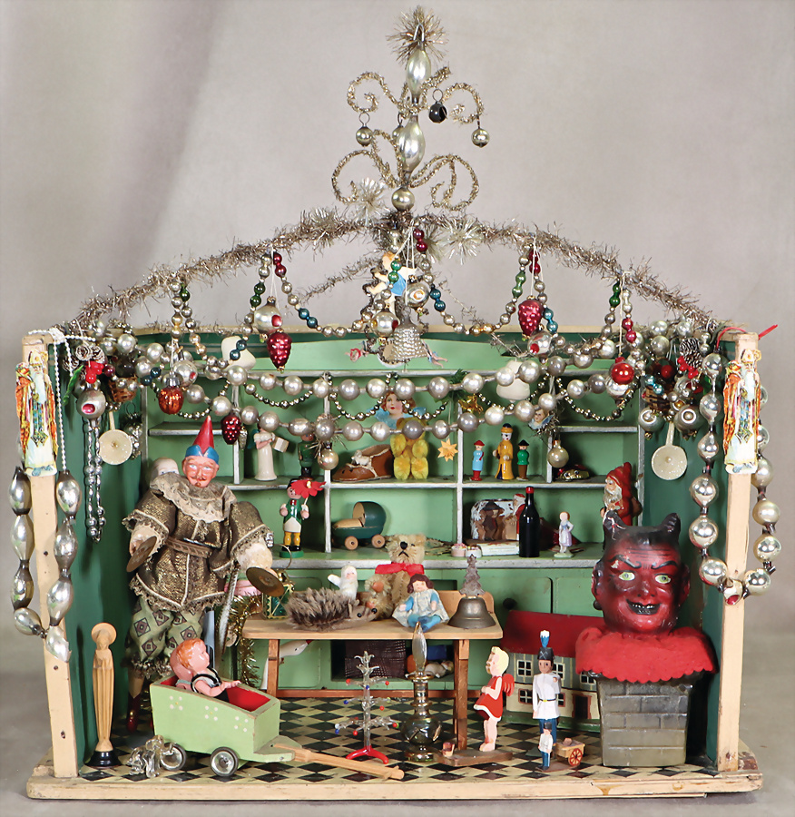 Puppenstuben-Kaufladen, Bastelarbeit, eingerichtet als Weihnachtsladen, B: 55 cm, H: 34 cm
