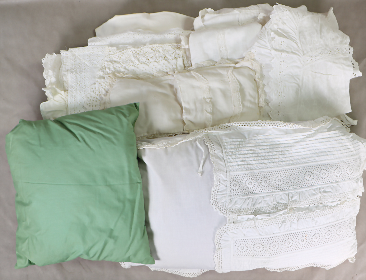 Konv. Stoffe, Spitzendecken, Kissen, meist um 1900
