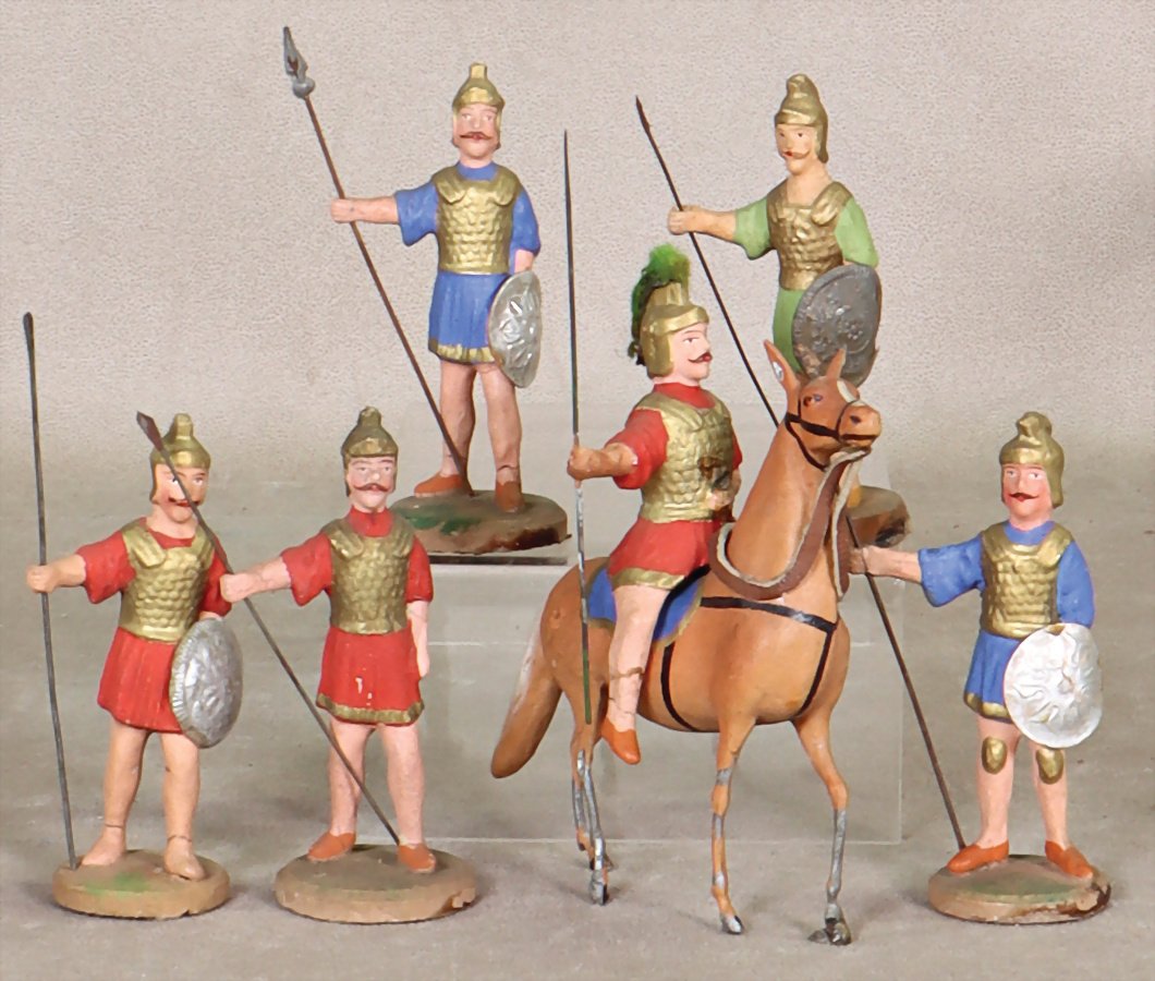 Figuren, Römer, 8,5 cm, Masse, 1 Schild fehlt, sonst guter Zust., 1 Reiter, 1 Fuß weggebrochen