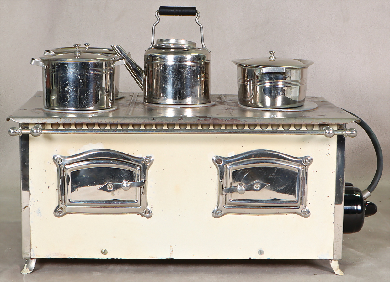Puppenküchen-Herd, ca. 1920, elektr. Ausführung, B: 37 cm, H: 20 cm, ohne Funktion, nur als Dekostück verwendbar