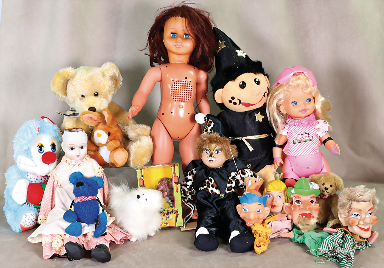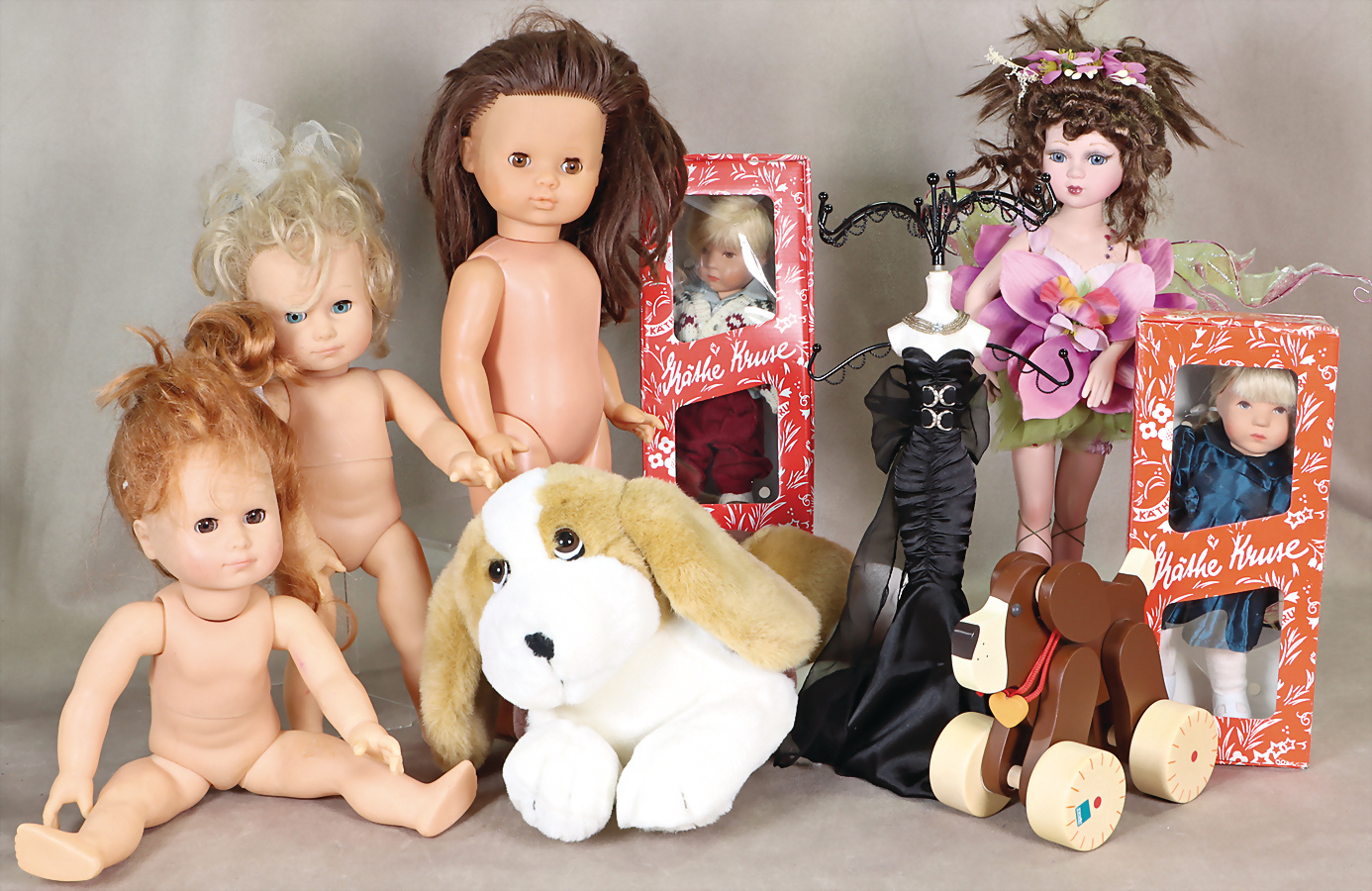 Fundkiste, Porzellan-Puppe, neuere Produktion, Stofftiere, Bären, Vinyl-Handspielpuppen